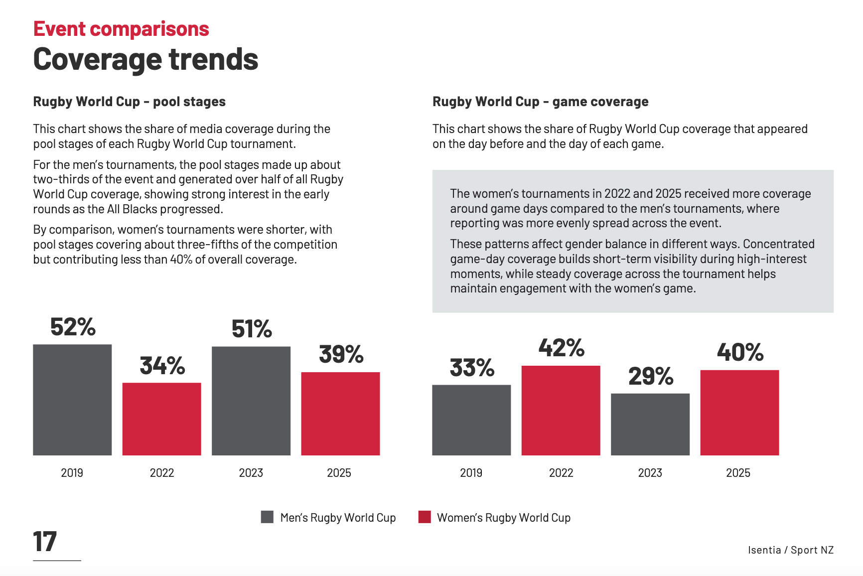 Same level of coverage as 2022! More game day coverage than the men's World Cups! Only 5% more coverage for an All Black loss to South Africa than a Black Ferns quarter final win!